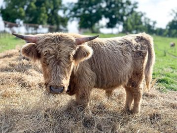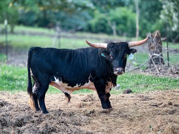 Buckshot comes from the smallest herd in the country of miniature longhorn. He is 39" and weigh's in around 400 at 4 years old, side note. He is Non-Chondro. Put this with your Chondro+ HighPark girls and watch out!